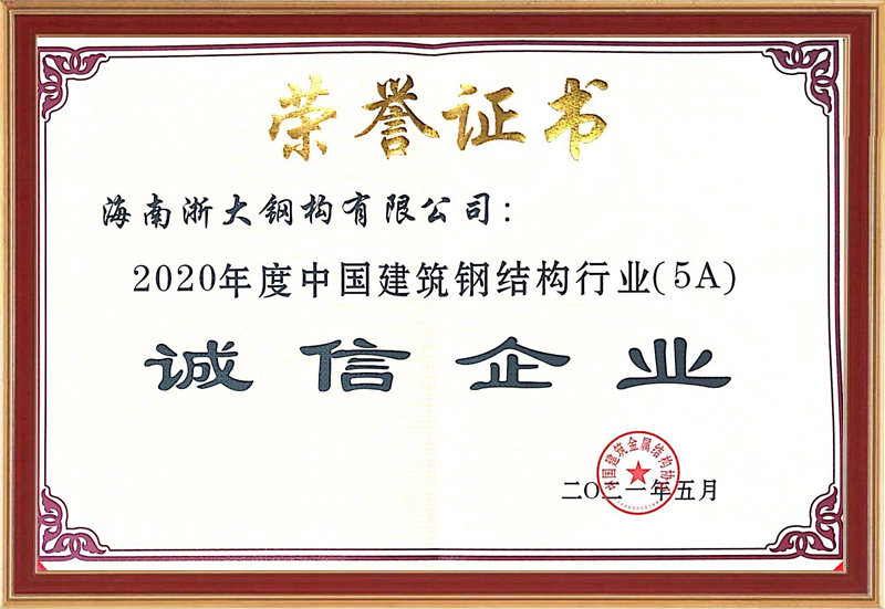 2020年度中國建筑鋼構行業(5A)誠信企業